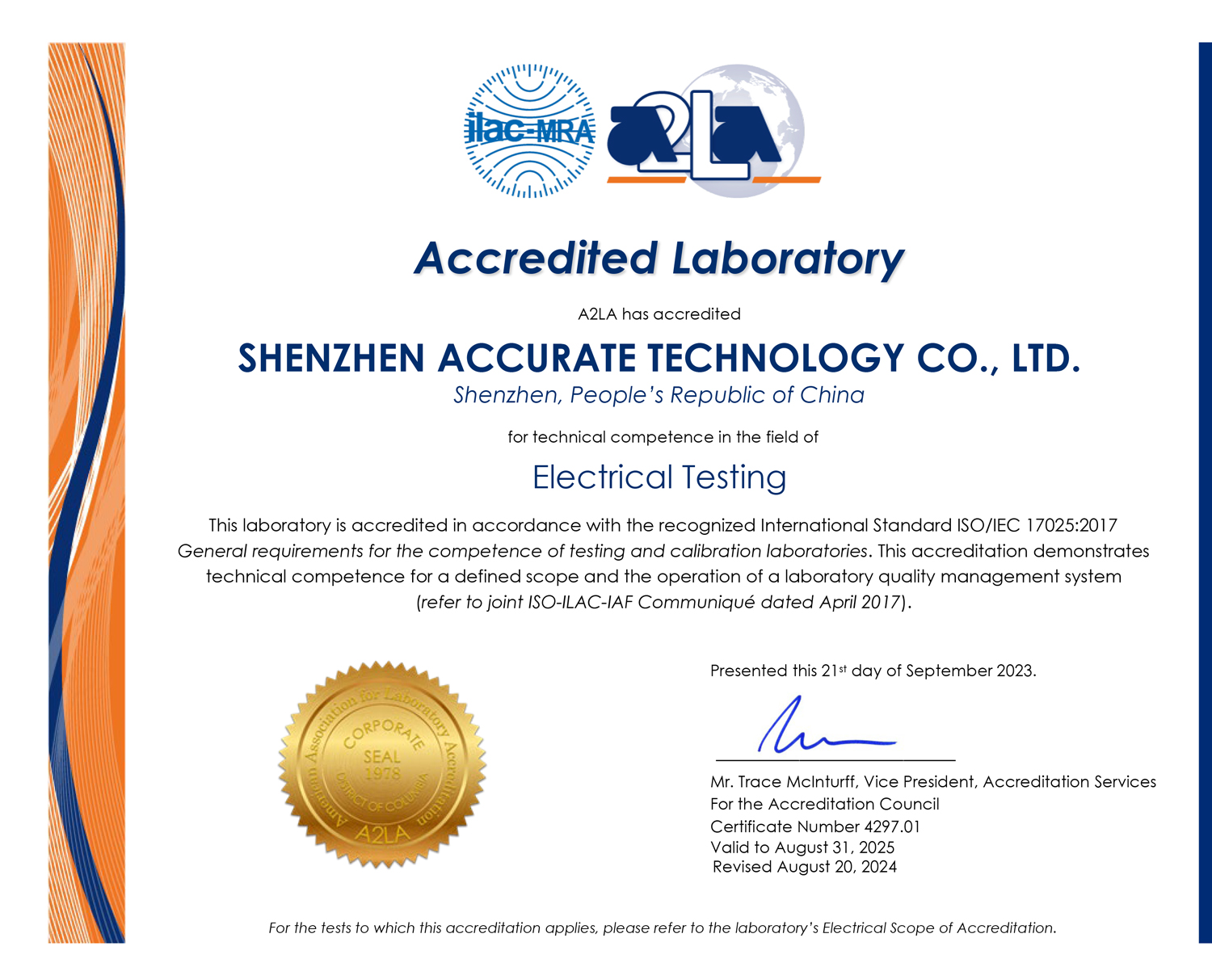 美國A2LA證書