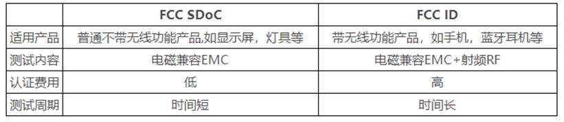 FCC针对电子产品的类型分为两种不同的认证方式,分别为:FCC SDoC和 FCC ID(Certification) ,前者适用于普通不带无线功能产品,后者适用带无线功能的产品。