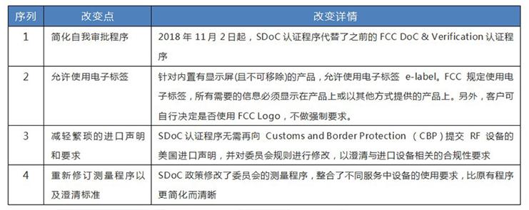 美国联邦通信委员会FCC在2017年11月2日,将DoC和Verification合并为SDoC(Supplier’s Declaration of Conformity),SDoC认证将取代FCC Verification和DoC认证程序,所有适用于FCC Verification和DoC认证程序的设备均可采取SDoC认证程序。
